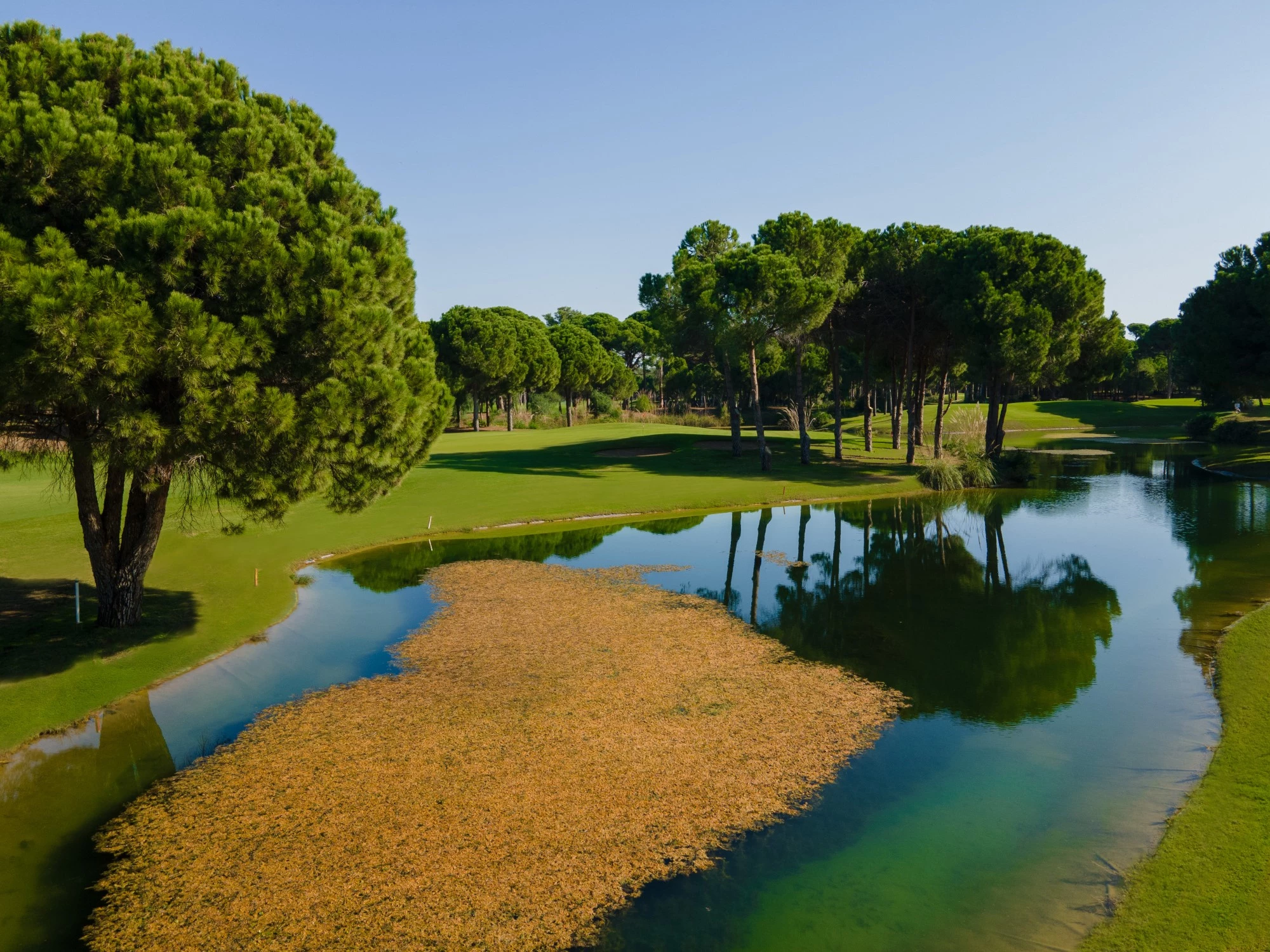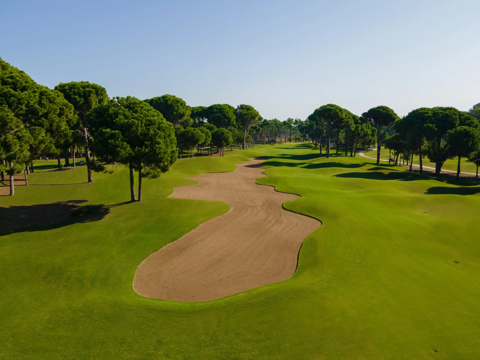kantad av pinjeträd. Här får golfare med låga handikapp en riktig utmaning.