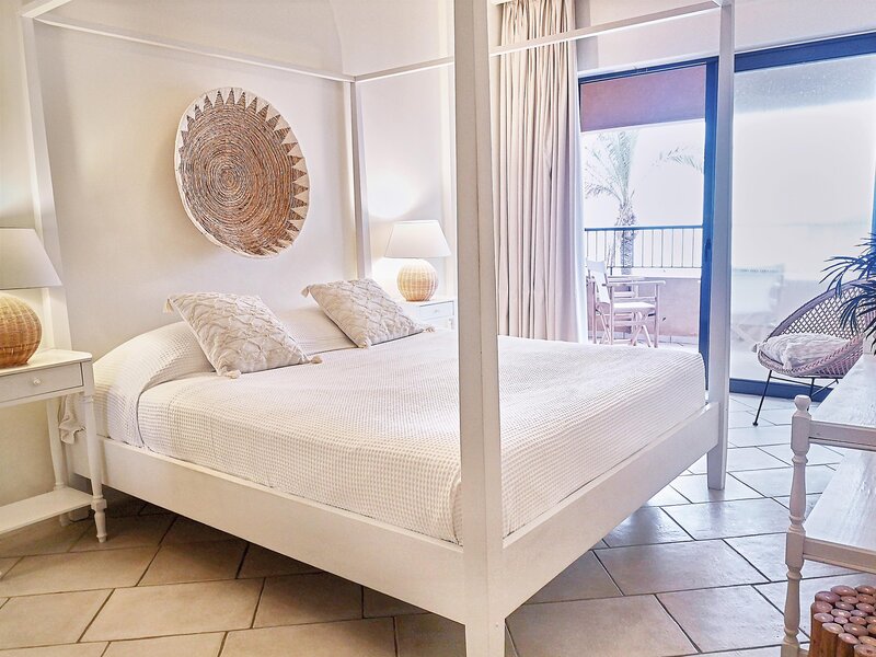 poolen och på markplan. Båda rumstyperna har havsutsikt.