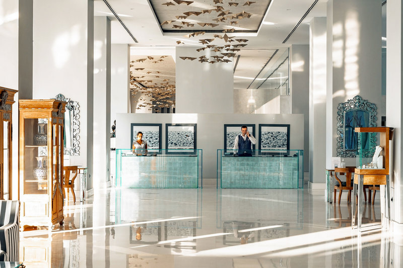majestätisk och inbjudande ut samt hela hotellet går i ljusa färger vilket ger