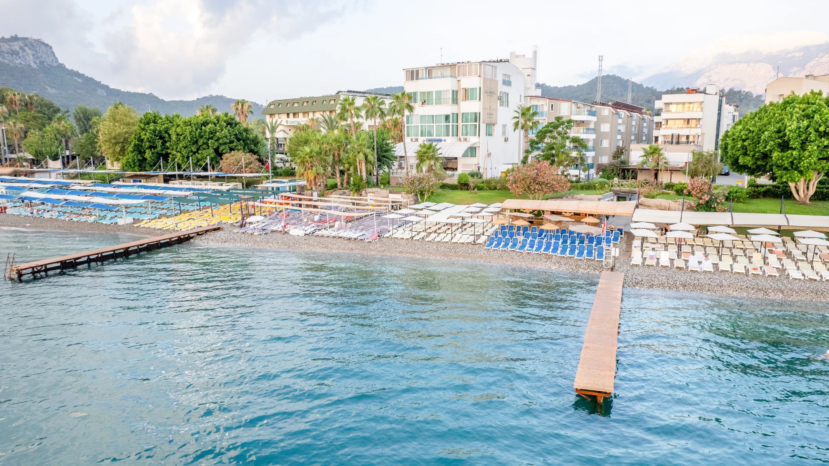 fantastiskt läge direkt vid Kemers vackra klapperstensstrand och beläget på den